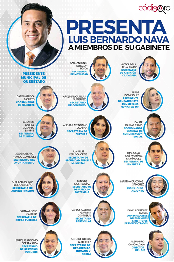 Gabinete de Luis Bernardo Nava, presidente municipal de Querétaro 2018-2021. Imagen: Código Qro.