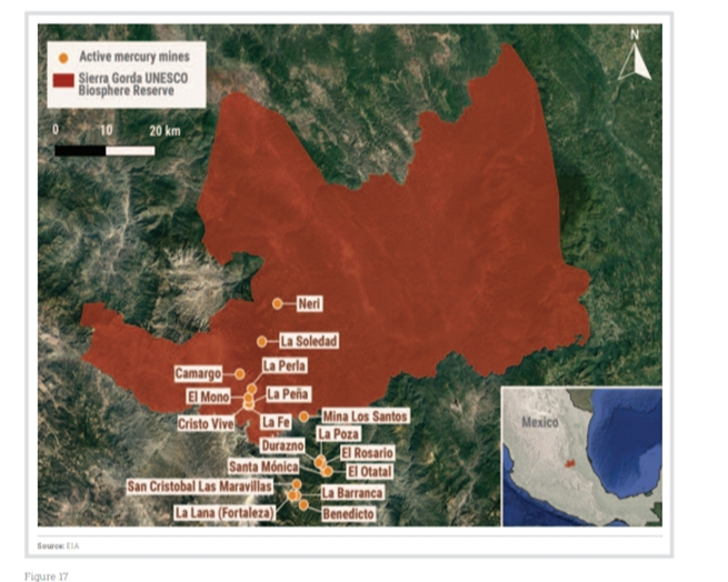 Las pequeñas minas son artesanales y están ubicadas dentro de la Reserva de la Biosfera, protegida por la UNESCO. Sin embargo, a pesar de la contaminación que la explotación de mercurio produce, hasta el momento ninguna autoridad municipal, estatal o federal ha atendido la problemática.
