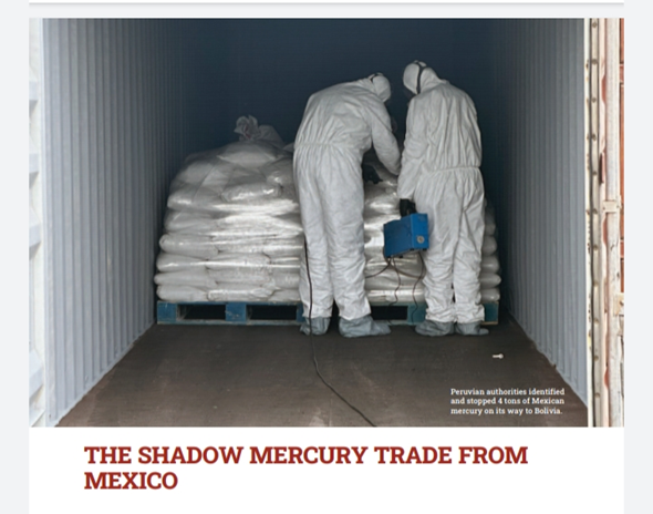 Según el informe de la EIA, la organización criminal maneja una sofisticada red que exporta mercurio disfrazado como “material de construcción”, principalmente, desde el puerto de Manzanillo Colima, logrando eludir incluso inspecciones con rayos X, hacia Bolivia, Colombia y Perú, donde se procesa para la minería aurífera ilegal.