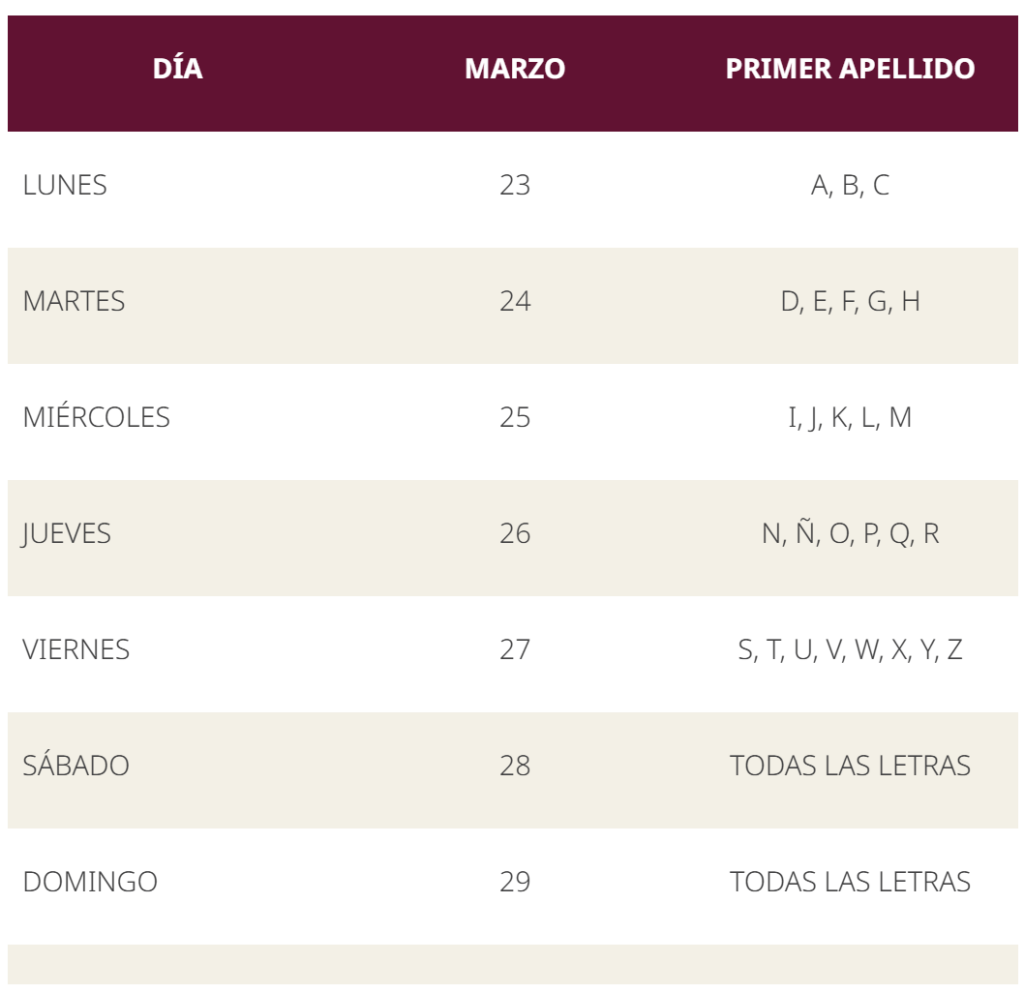 A la fecha, en el bimestre marzo – abril, un millón 596 mil 986 derechohabientes recibieron el pago de su Pensión para Personas con Discapacidad que otorga de manera bimestral 3 mil 300 pesos. Para brindar una mejor atención, el registro se realiza de acuerdo con la letra del primer apellido de la persona, bajo el siguiente calendario.